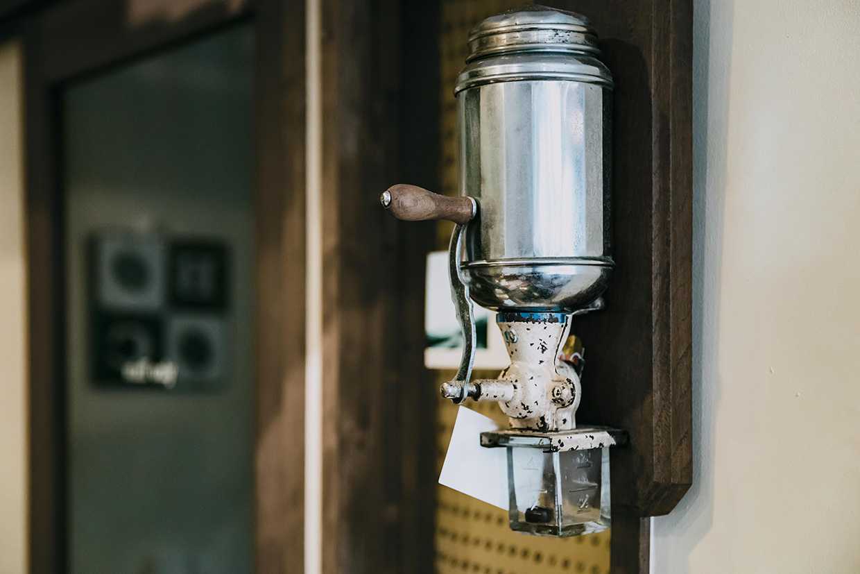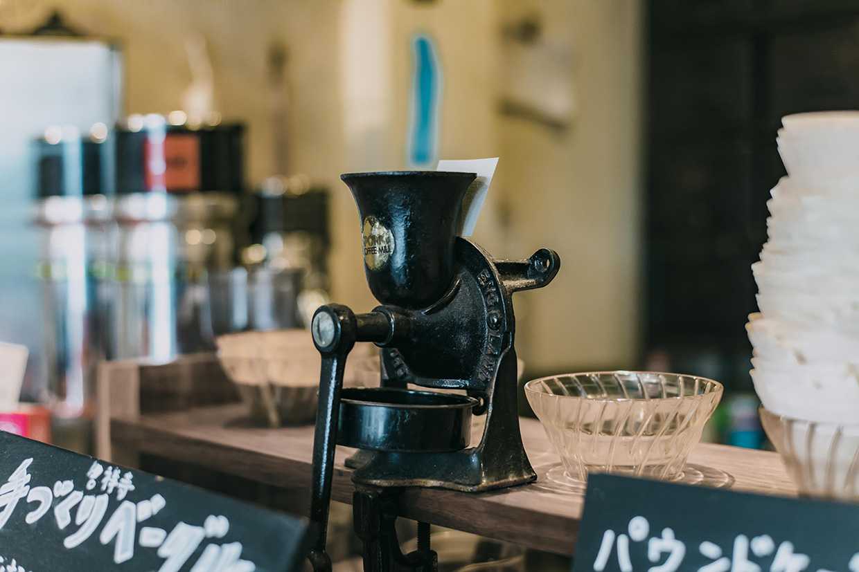 店内には珈琲に纏わる昔ながらのガラスのパンケースや海外ビンテージのアイテムも多く目に止まる。古いモノ好きなら、きっと心をくすぐられるはず。