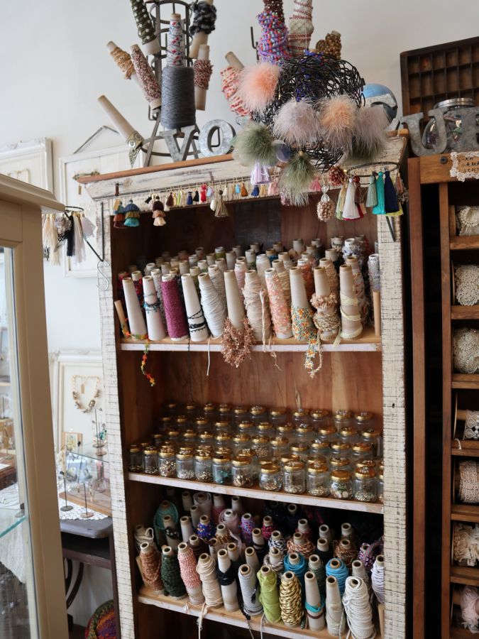リボンやレース、チェーン、ビーズ、金具など、見ているだけでもワクワクするパーツの数々。