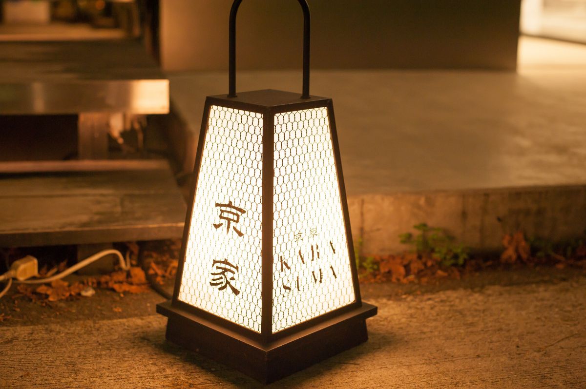 階段の上り口に置かれた、行灯がお店の目印です。まるで京都へ旅行に来たかのような、非日常的な気分に。