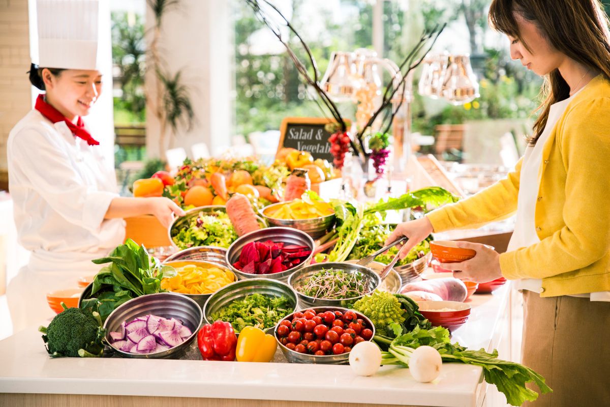選べるメインとともに、こだわり旬野菜×人気スイーツをバイキングで味わい尽くす!