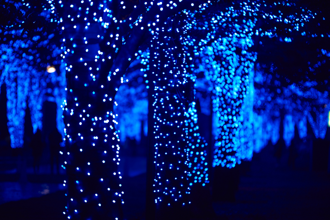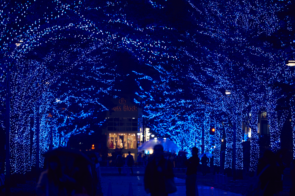 代々木公園ケヤキ並木から渋谷公園通りまで、全長約800mにわたり青一色の光でライトアップ。あたりは幻想的な空間に包まれます。