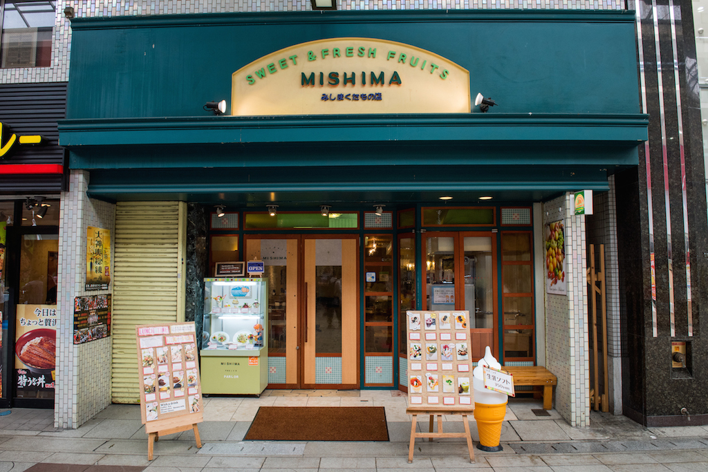 「フルーツパーラーみしま」は、愛媛県松山市の中心部・大街道商店街にある、昭和2年創業の老舗果物店が営むパーラー。新鮮な愛媛産フルーツが味わえる有名店です。
