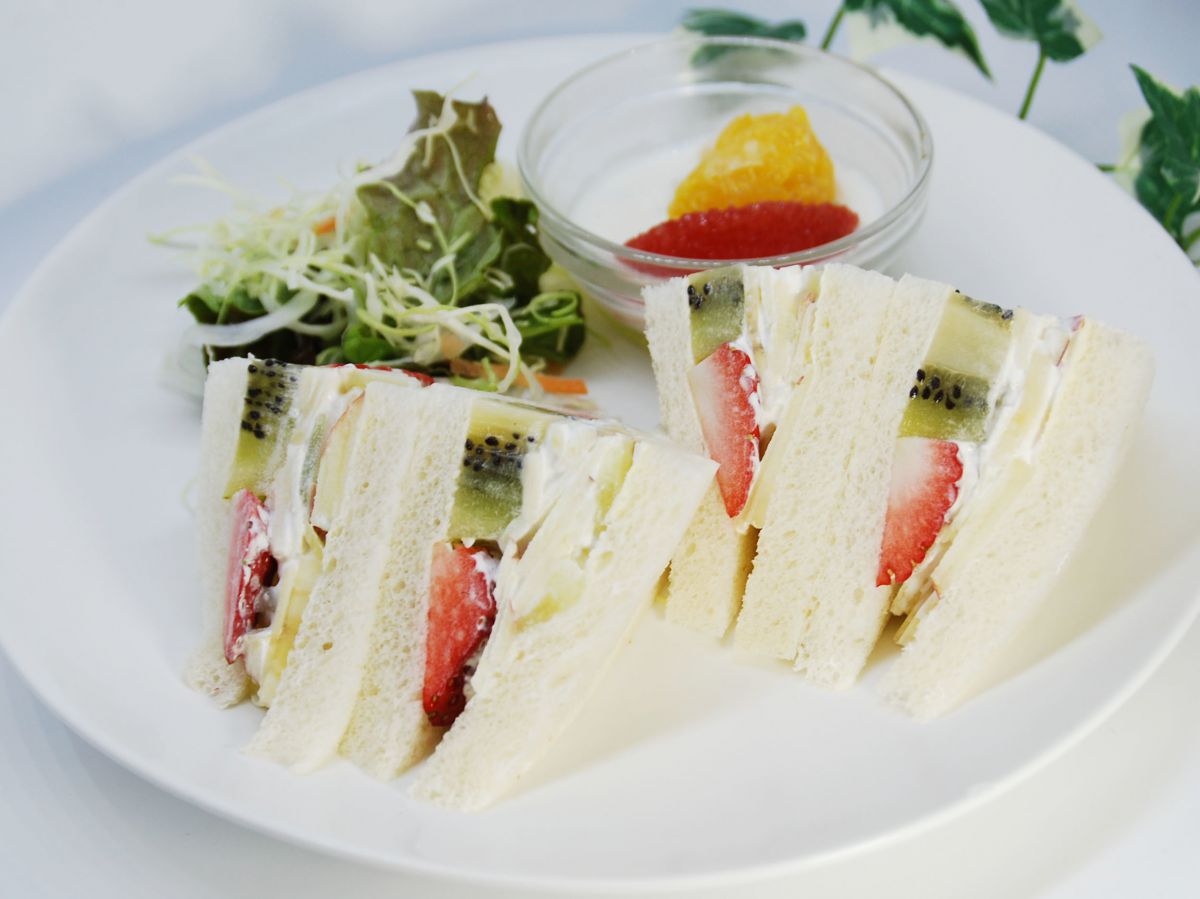 フルーツパーラーならではのランチメニューにも注目を。11時30分~14時30分のランチタイムに注文できる「スイートサンド」700円は、クリームの甘さが控えめで上品な味わい。ふんわり柔らかなパンは、地元の老舗・うちだパンの食パンを使っているんですって。食後にはプチ・ミックスジュースやプチ・バナナミルクなど、好きなドリンクが一つ選べるのもいいですね。
