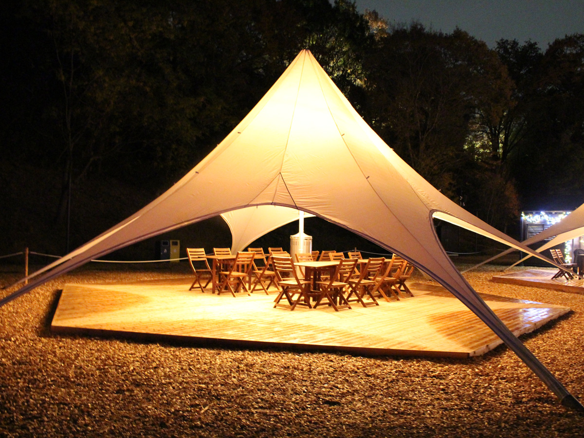 テント席は中央にストーブが設置されていて、屋外とは思えない暖かさ。