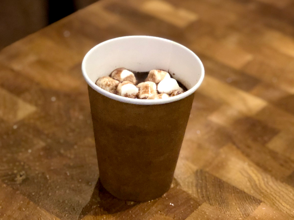 ホットチョコレートは、赤ワインが入っていて芯から体が温まります。たっぷりのマシュマロがさらに濃厚な味わいに。