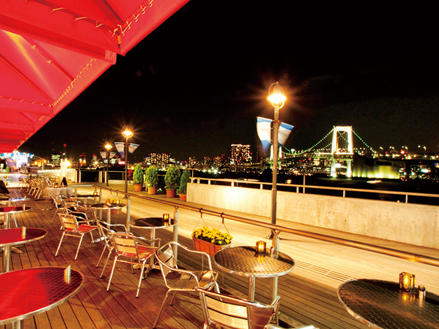 ベイエリアの夜景がディナーを盛り上げるカフェレストラン