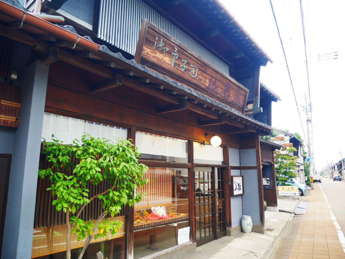 小松駅から徒歩10分の「松葉屋」は、創業から166年の歴史を持つ由緒ある和菓子店。初代が小松の有名なお寺「那谷寺」の前で羊羹を売り出したのがはじまりだそう。現在は5代目の店主がその看板を守っています。