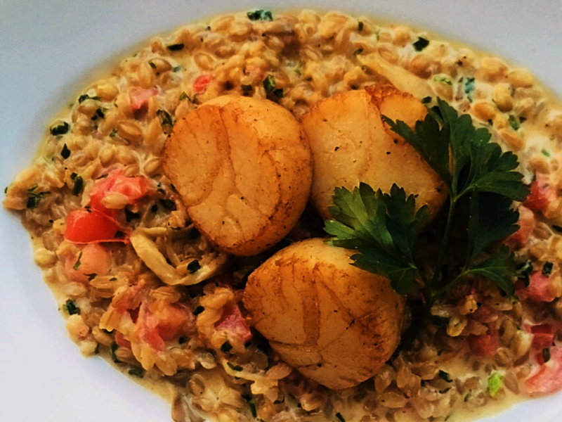 シェフが腕に縒をかけて作る「シカダ」の地中海料理は、どれも本当においしいと大評判!特に人気を集めているのが、大ぶりなホタテが贅沢に載った「ホタテのロースト ファロと舞茸のクリームリゾット」(2300円)です。イタリアで昔から食べられているスローフード「ファロ」をお米の代わりに使ったリゾットです。