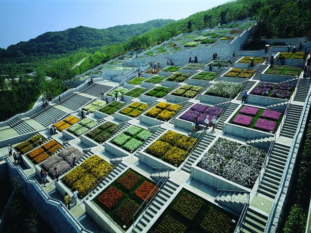 緑に囲まれた敷地の中に、ホテルや会議場、野外劇場、温室などさまざまな施設が集まった複合リゾート施設。建築家・安藤忠雄氏グランドデザインの、ダイナミック空間美が広がります。その中でも、100区画の花壇が並ぶアーティスティックな百段苑、大阪湾を一望できるプロムナードガーデンは散策にぴったり。草花と建築を眺めながら、安藤忠雄ワールドをたっぷり堪能してみては?