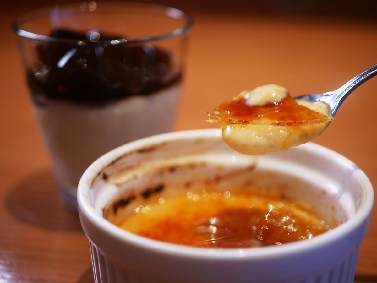メインがおトクなので、食後のデザートも注文しちゃいました!「自家製豆乳ブリュレ(400円)」は、表面カリカリで中ふわふわ!優しい甘みが口いっぱいに広がります。「コーヒーゼリーのパンナコッタ(292円)」も苦みと甘みが溶けあって、スプーンが止まりません。