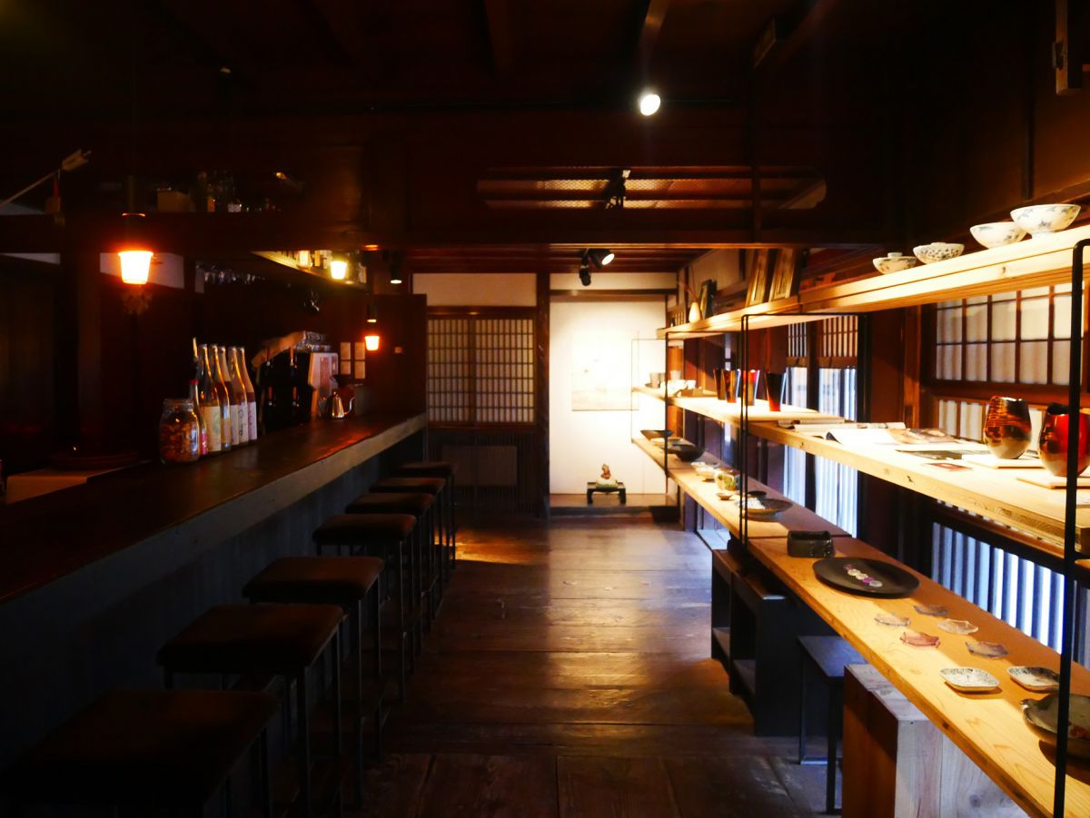 『フゾンカガ カフェアンドスタジオ』は、実は2号店。1号店の『FUZON KAGA Gallery and Bar(フゾンカガ ギャラリーアンドバー)』は、築130年以上の町家を使った夜限定バーなんです。こちらは工房ではなく、ギャラリーとして様々なアート作品がずらりと並びます。カフェの雰囲気が気に入ったら、夜はこのお店に足を運んでみたいですね。
