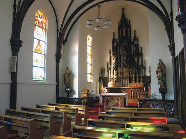 畳敷きの聖堂にびっくり!ゴシック様式の祭壇に目を奪われるとんがり塔の教会