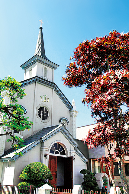 明治時代に建築された、尖塔が目印のロマネスク様式の教会です。ナラの木で細工された祭壇、弘前の町や岩木山が描かれたステンドグラスなど見どころはたくさん。なかでも「あれ?」と驚くのが、聖堂が畳敷きになっていること。かつて床で礼拝をしていた頃の名残とはいえ、不思議な空間に感じられます。ミサや冠婚葬祭時以外は一般開放されていて自由に見学できるので、敬虔な雰囲気にひたってみてください。