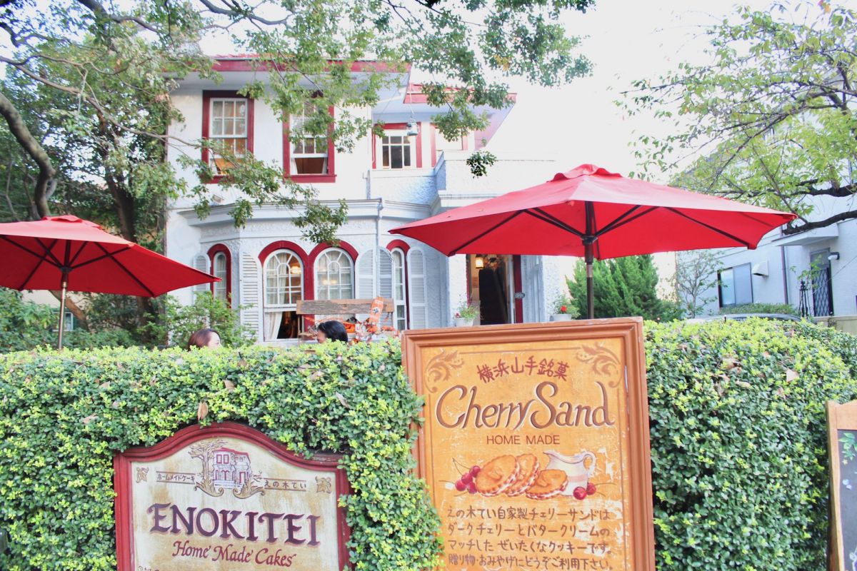 みなとみらい線の元町中華街駅から、まるで外国のようなおしゃれな街並みを歩いていくと「えの木てい」にたどり着きます。まず目に入ってくるのが、赤い屋根と真っ白な壁がかわいらしい洋館。まさに理想の外国のおうちで、手書きの看板もレトロで味があります。