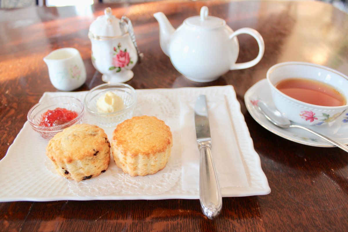 プレーンとカレンツ(レーズン)の2種類の手作りスコーンは、しっとりとした生地のバターの風味がたまりません。クロテッドクリームとストロベリージャムをたっぷり塗れば、本場イギリスの味そのものです。