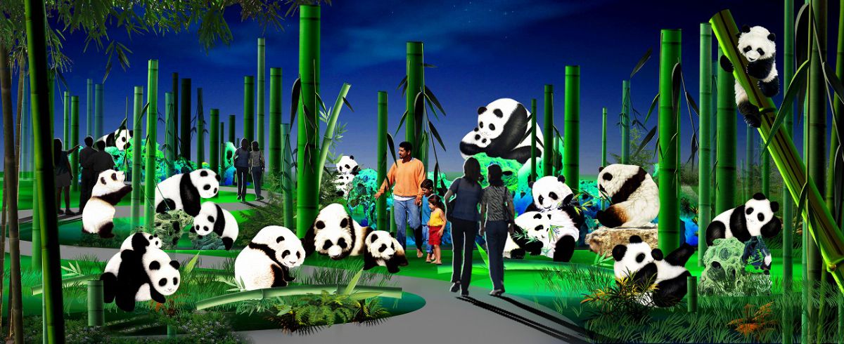 竹林で遊ぶパンダがかわいい展示も。50体のパンダに囲まれてみませんか?