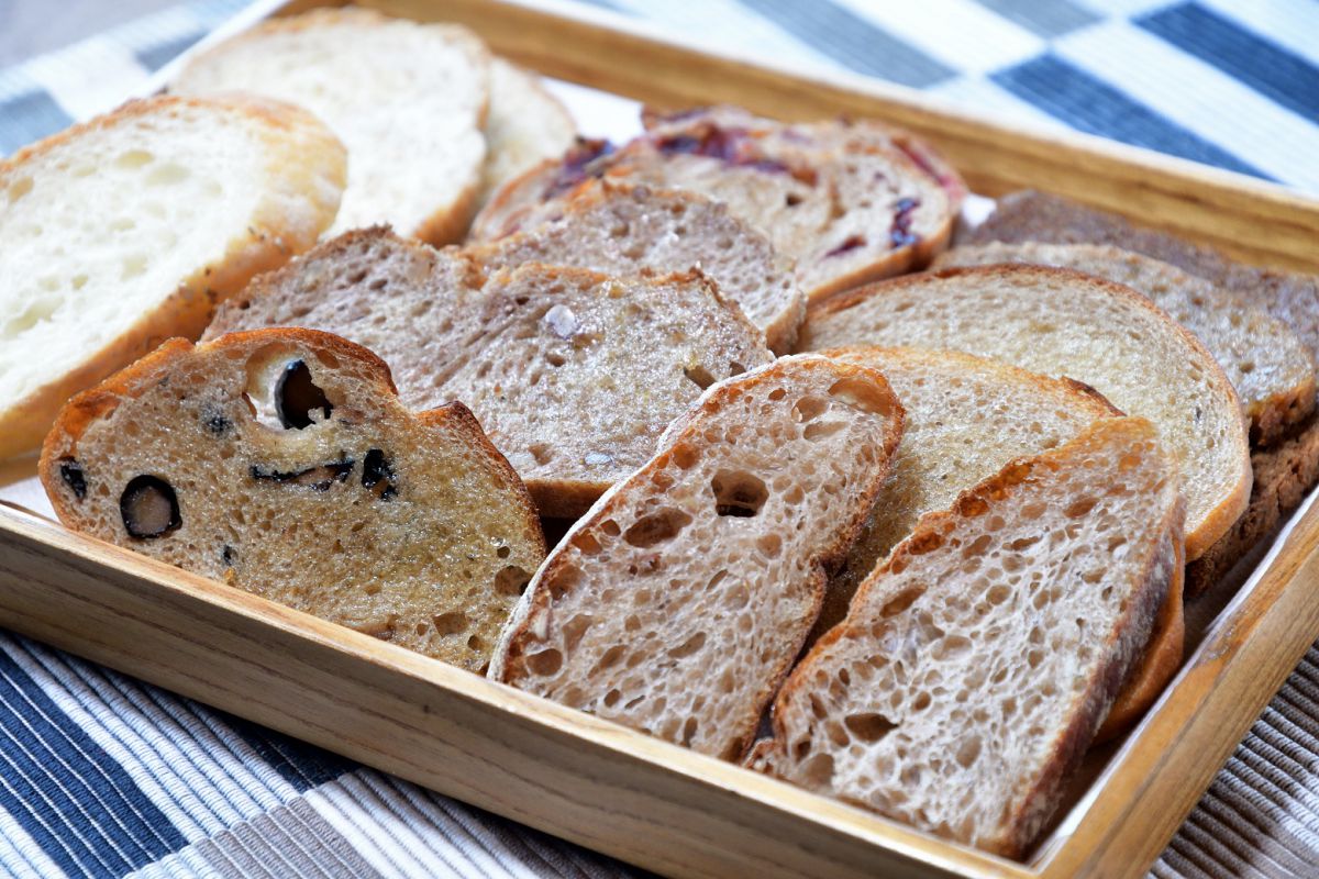 いろんなパンが少しずつたくさん味わえるのもCランチの魅力!ライ麦粉やサワー酵母を使い、伝統的なレシピで作る「クルミ入りライブレッド」や「プンパニッケル」などお店自慢のパンが7種類ほどトレーにのってやってきます。