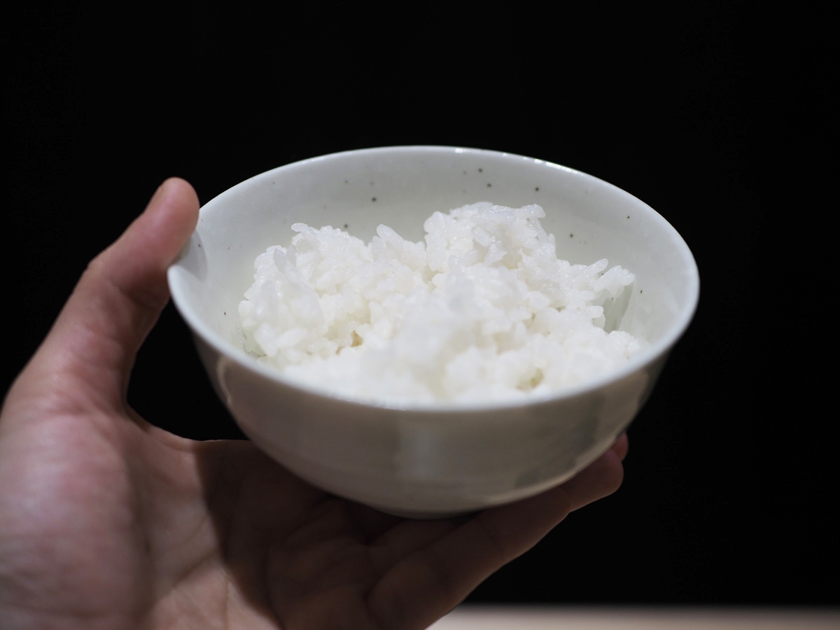 小の白ごはんは約150g。手にすっぽりと収まる小ぶりなお茶碗1杯分です。女性にはこれくらいがちょうどよさそう。