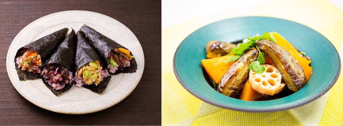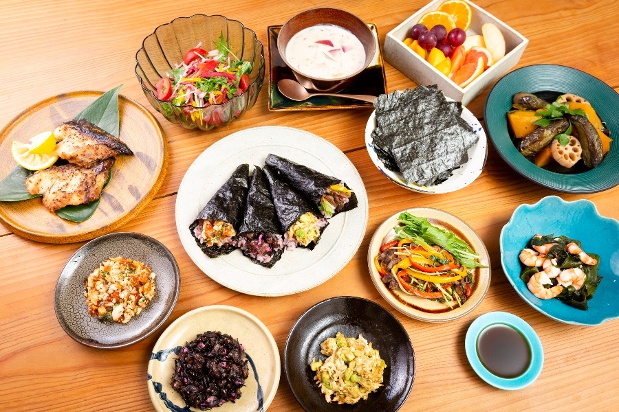 メニューは、カラフルな手巻きや、煮物、野菜たっぷりのスープなど、どれも健康を考えた食事なのに彩り豊か! もちろん味も申し分なしのおいしさです。