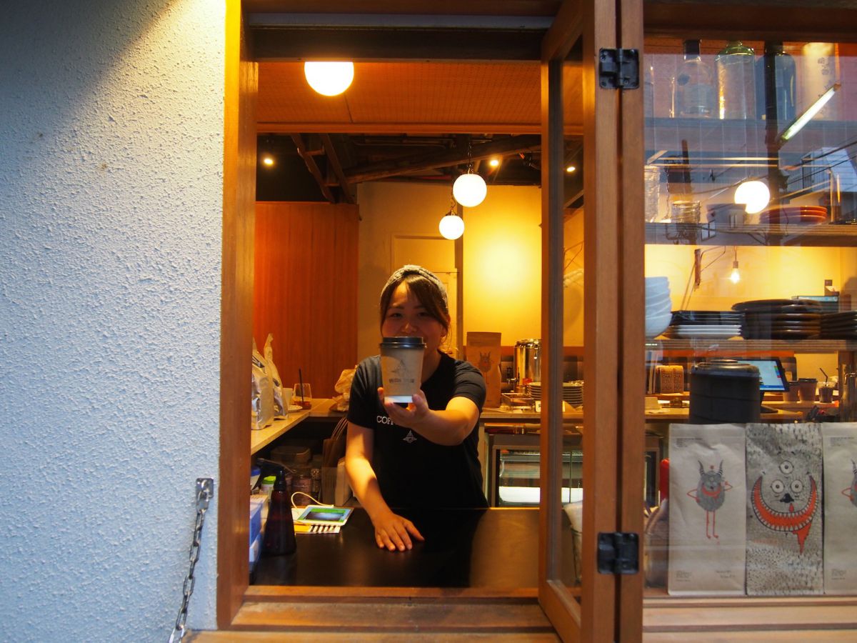 店員さんがおいしいコーヒーを窓から渡してくれますよ。笑顔で挨拶を交わすと、1日のはじまりが気持ちよくなりますね!