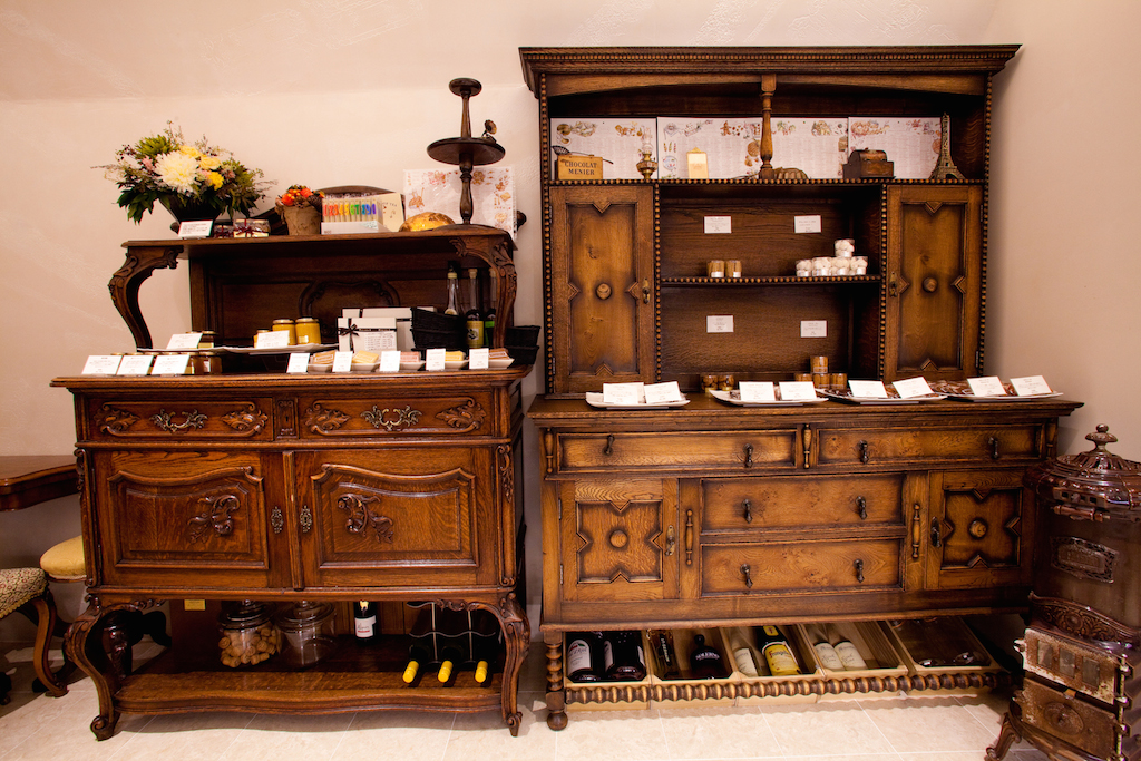 重厚なアンティーク家具に並べられる焼き菓子。本物へのこだわりが、店に置かれた調度品からも感じ取れます。