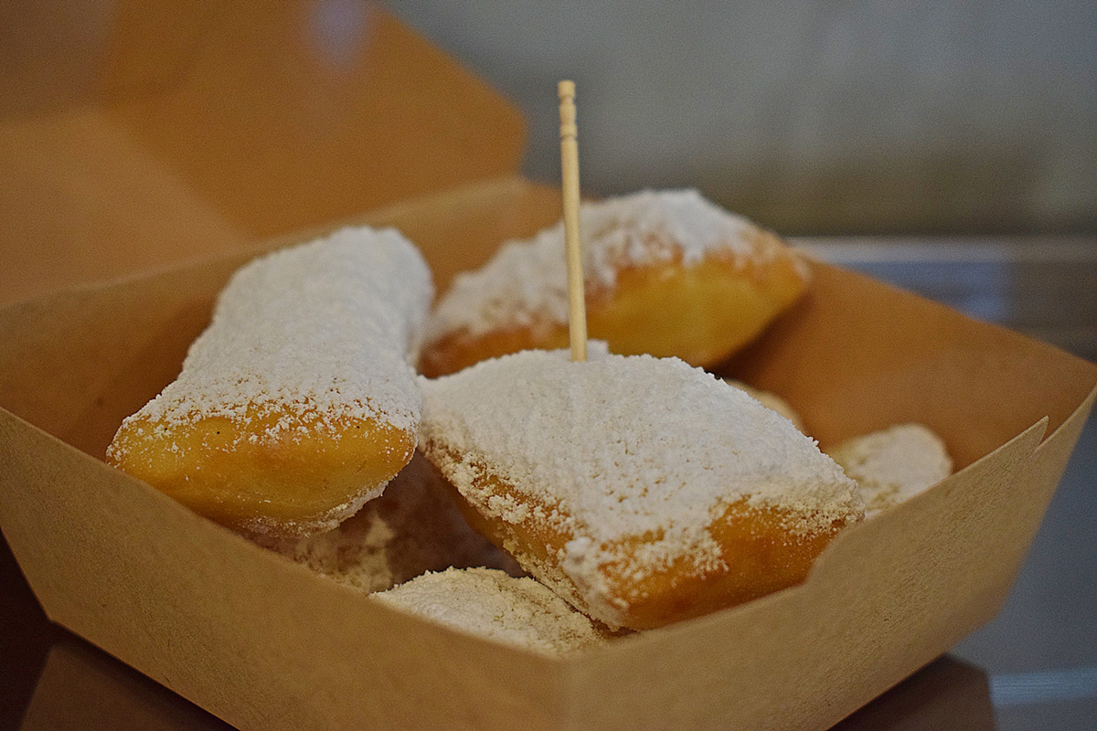 デザートはニューオ―リンズの定番デザート、ベニエ。四角いドーナツのような揚げ菓子です。