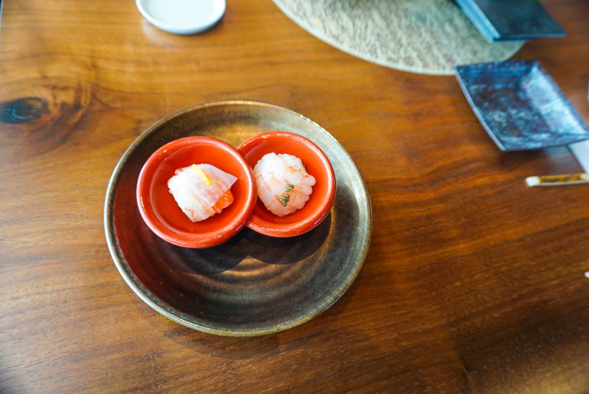 甘海老の手まり寿司にはキャビアが、アラザンのように飾られていました。可愛すぎて悶絶せずにはいられません。