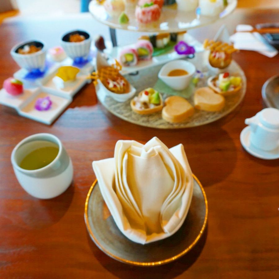 「WASHOKU蒼天 SOUTEN」で11時30分~14時30分に楽しめるのは、なんとお寿司のアフタヌーンティー「華凛〜Temarisushi〜」。四季によって食材や内容が変わりますが、今回は2017年冬にいただいたメニューをご紹介します。