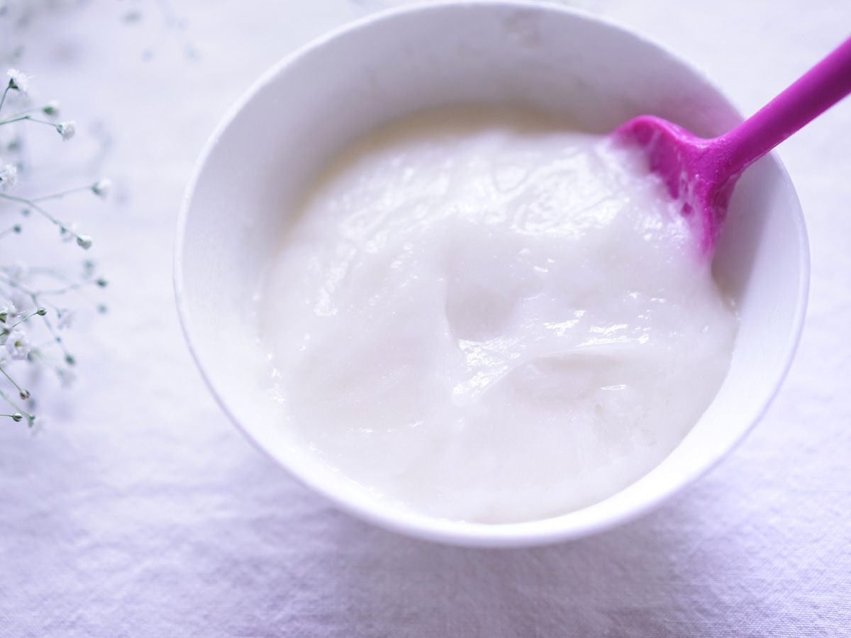 さらに1~2分、様子を見ながら加熱すると、お餅のできあがりです。透明感が出るまで、しっかりとへらで混ぜます。熱いので気をつけて。