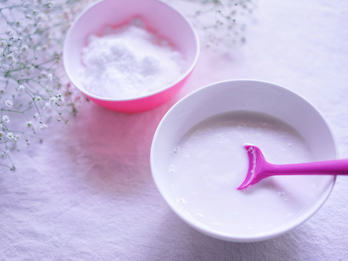 白玉粉に少しずつ水を加え、よく混ぜます。ダマが残らないよう丁寧に。よく混ざったら、白砂糖を加えさらに混ぜます。