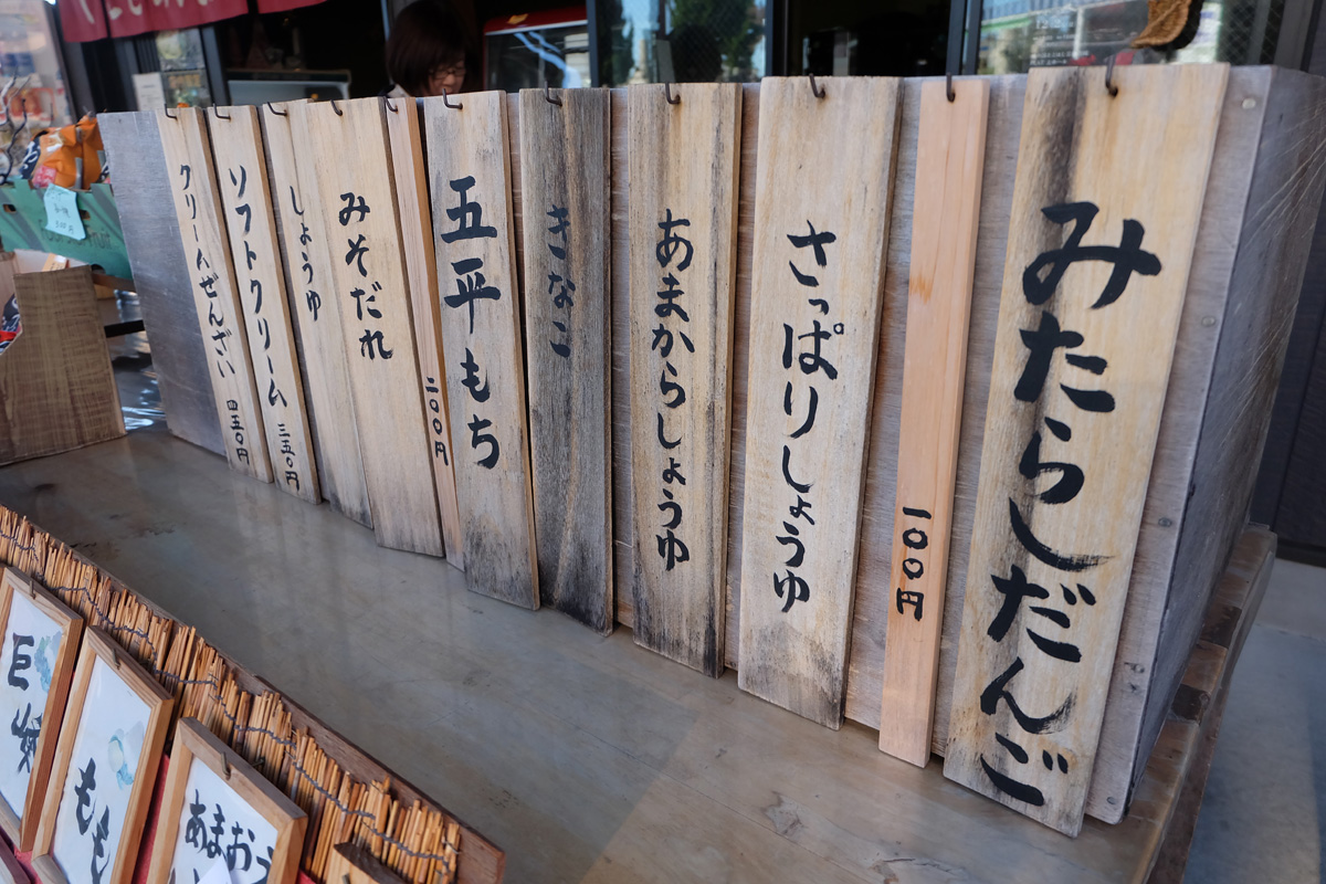「やごとのだんごやさん」のお団子は、どれもひとつずつ丁寧に焼き上げているのが特徴です。自慢のみたらしは醤油ベースのタレが自慢。この味付けは飛騨高山で多く見られ、お団子に使う醤油を飛騨高山から取り寄せるほどこだわっています。
