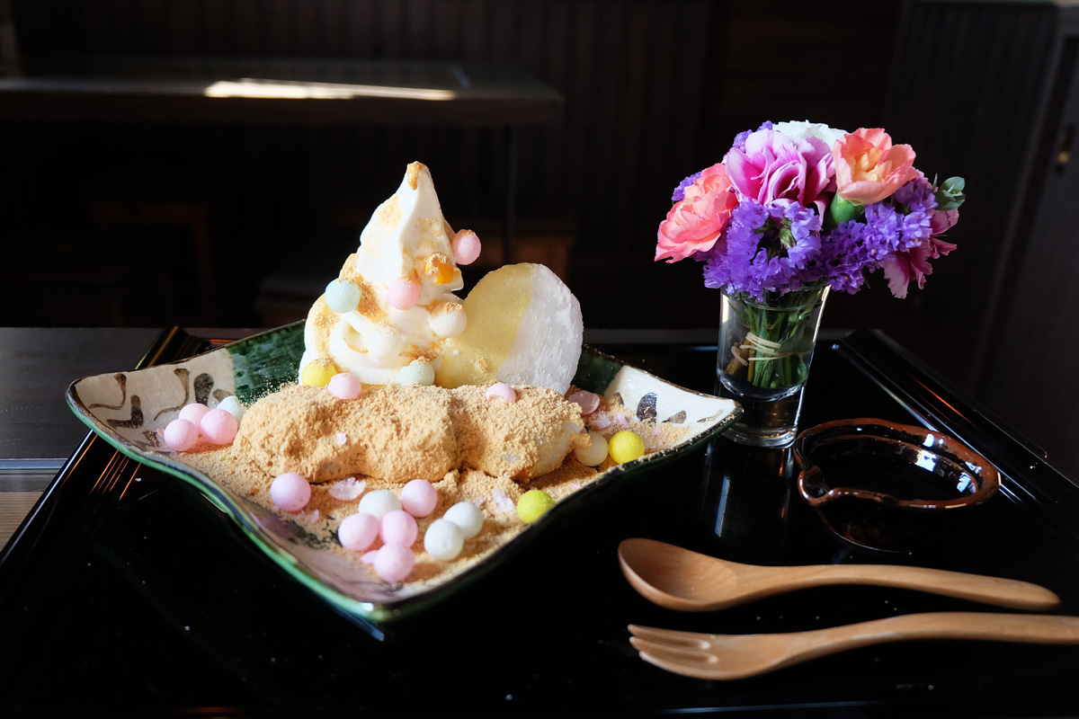きなこ団子とソフトクリームに、ポップで可愛らしいおいりを加えた「あいらしきなこ」(780円)も人気メニューのひとつ。ついつい写真を撮ってしまいたくなるメニューが充実しています。
