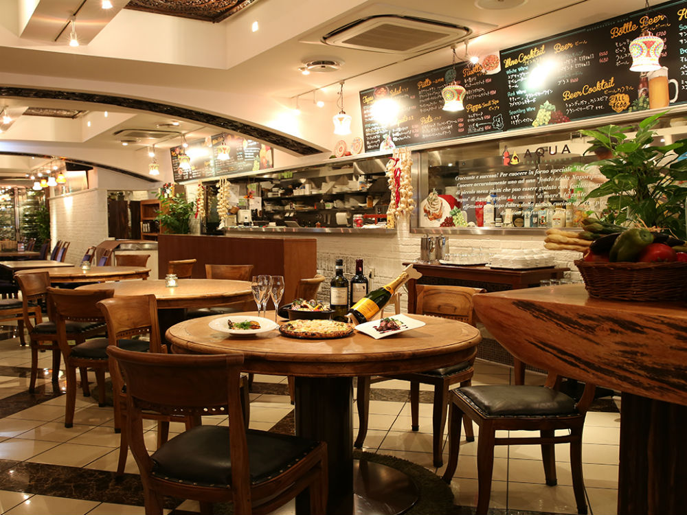 学問のご利益で有名な「湯島天満宮」から徒歩圏内、「アメ横」にも近く、上野駅から徒歩2分というアクセス抜群の「イタリアン&バル アクア」。