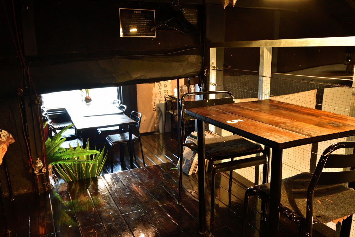 店内には靴を脱いで上がります。間接照明が灯る空間は、昼でもやや暗め。無骨さがありながら、どこかぬくもりのある雰囲気は、店主の前川さんが好きだというニューヨークをイメージしているのだとか。