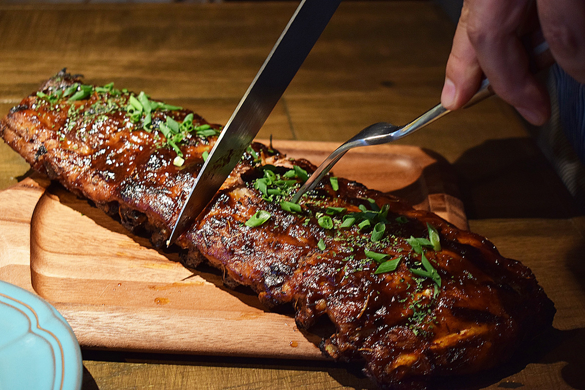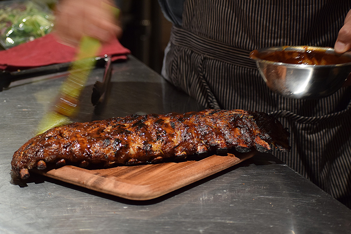 エスプレッソグリルは2種類あり、「バックリブ(ポーク)」が4~6人前目安のフルサイズで4800円、2~3人前目安のハーフで2800円、1~2人目安のクォーターで1900円。「ショートリブ(ビーフ)」が3~4人前目安で5800円。今回はバックリブの調理風景を見せていただきました。