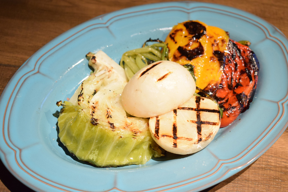 肉料理と合わせてオーダーしたい野菜グリルや一品料理。旬の野菜を使った野菜グリル(780円~)は、低温調理後にグリルで焼き上げるから素材の味そのままに、香ばしくおいしく食べられます。