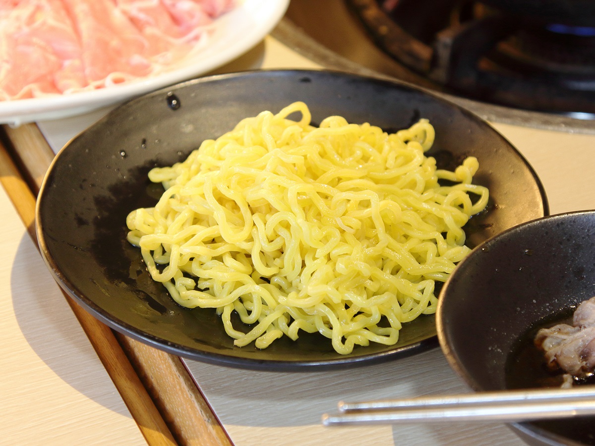 「ラムしゃぶ鍋」のシメにおすすめなのは、中華麺。こちらの中華麺は、札幌の味噌ラーメンの名店「すみれ」と同じ製麺所で打ったオリジナル麺なんだそう。