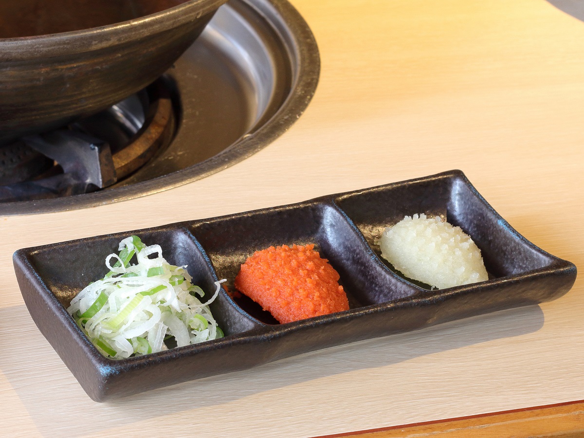 “味変”したいときには、セットで用意されるネギ、もみじおろし、ニンニクが少し入った玉ねぎのすりおろしをトッピングしてみてくださいね。