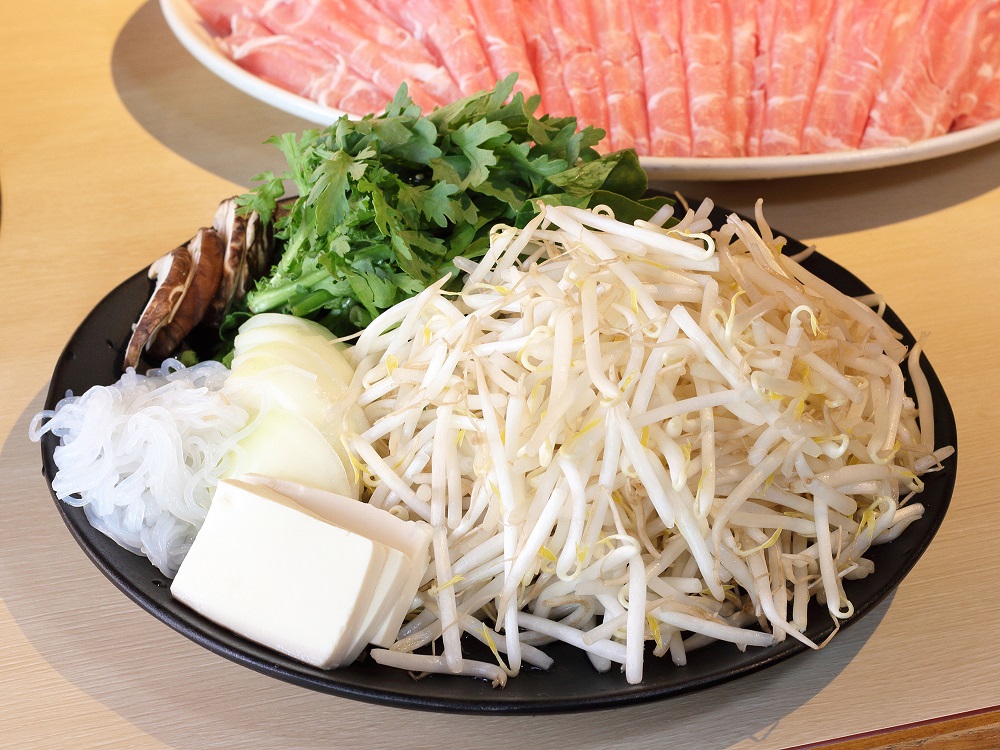 「ラムしゃぶ鍋 食べ放題 飲み放題Bコース」では、お肉以外の具材だってたっぷり。豆腐・しらたき・もやし・しいたけ・春菊・玉ねぎなどがたっぷりと盛られていて、ラム肉とともにこちらも食べ放題なので、野菜もたっぷりいただけるのは嬉しいですよね。