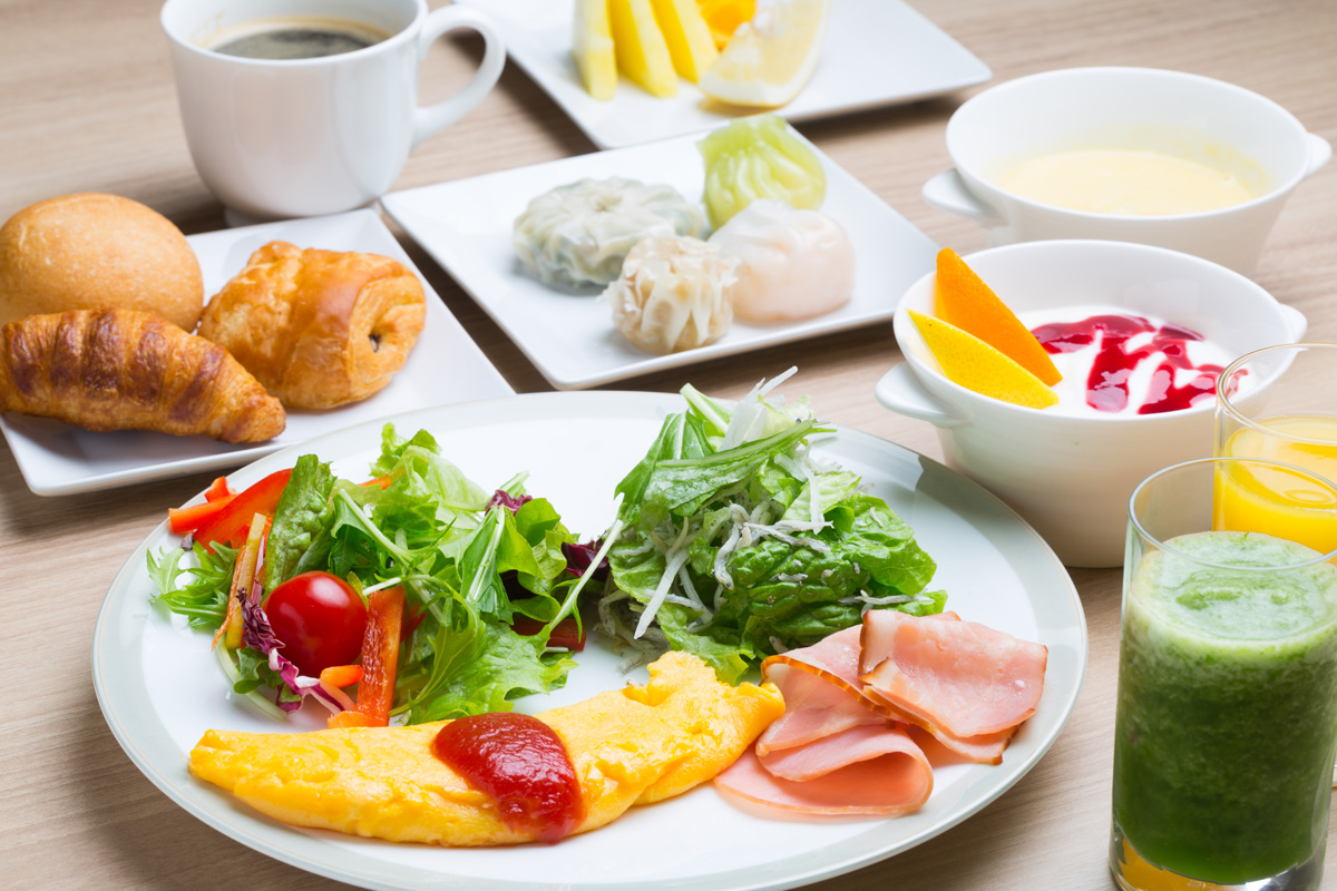 しらすたっぷりのヘルシーサラダから点心、ライブキッチンのオムレツと、朝からいっぱい食べたい欲張り女子も大満足!健康志向派にもうれしい、緑黄色野菜やフルーツを使った「本日のスムージー」やデトックスウォーターなどドリンクも充実しています。食後はゆったりと香り高いコーヒーやデザートの季節のフルーツ、ヨーグルトを楽しんで。