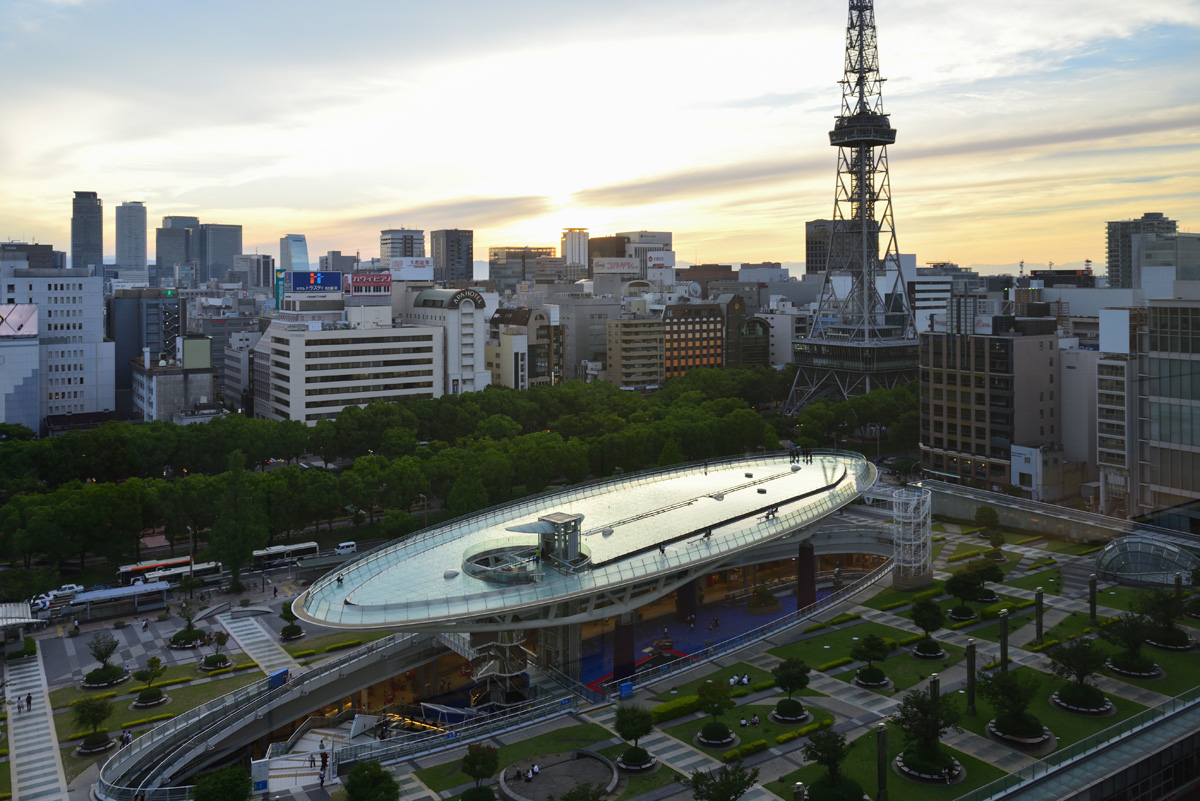 地下鉄栄駅直結、ホテルのある久屋大通駅からも地下街を利用して行ける「オアシス21」。ショッピングやグルメが楽しめる地上公園です。音楽フェス、観光フェス、氷じゃないスケートリンクなど、年中通してイベントも開催されています。夜はライトアップされた水の宇宙船やテレビ塔がムードたっぷりでデートスポットとして人気。