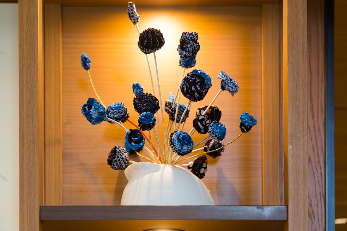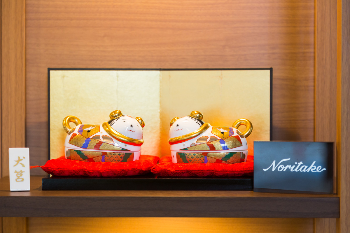 客室でコーヒーやお茶を飲むための容器は、名古屋が誇る「ノリタケボーンチャイナ」のおしゃれなマグカップ。ノリタケの壁掛けプレートや置物、有松絞りのオブジェなど、そこかしこに名古屋を感じるアイテムが飾ってあります。