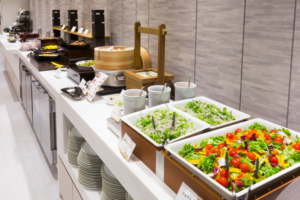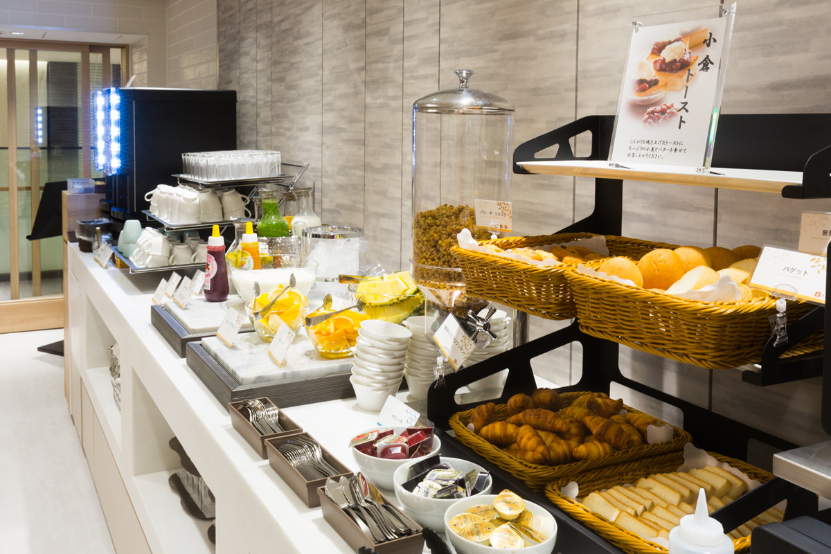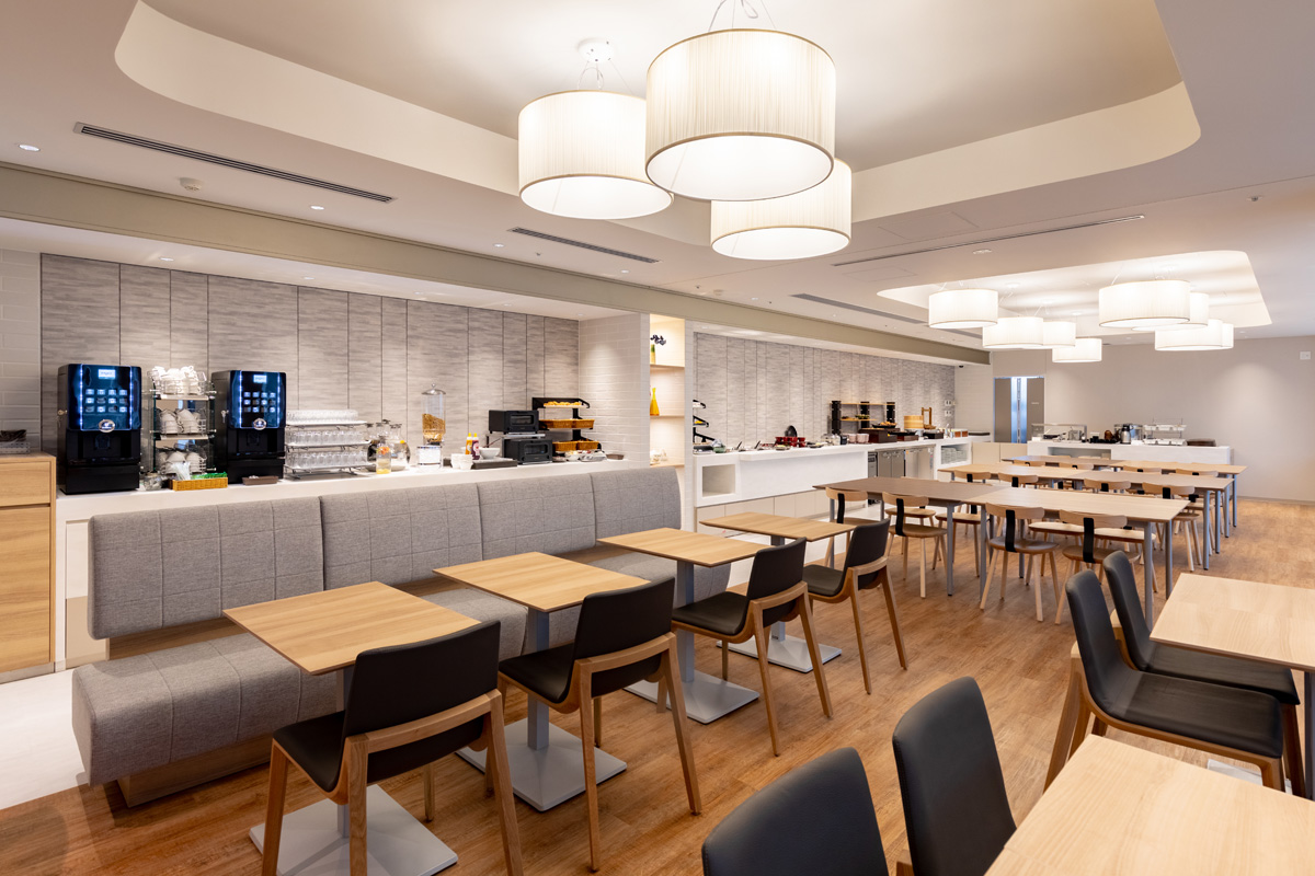 ナチュラルな色調の朝食レストランは、長居したくなるほど居心地のいい空間。カウンター席もあり、一人でものんびり朝食ブッフェを楽しめます。和食からコンチネンタルまで幅広いメニューが魅力。