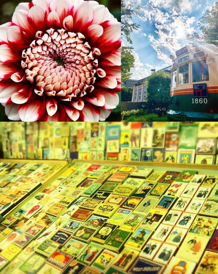 左 mizmizjさんの作品:夏から秋にかけて見頃となるダリアの花。折り重なる花弁が自然の芸術作品です。/右 akikong178さんの作品:車両も光の取り込み方で芸術作品に見えますね! /下 sa_yukichi10000さんの作品:色々な図柄のマッチ箱はいくらでも見ていられそう。アルゼンチンのアンティークショップ巡りで。