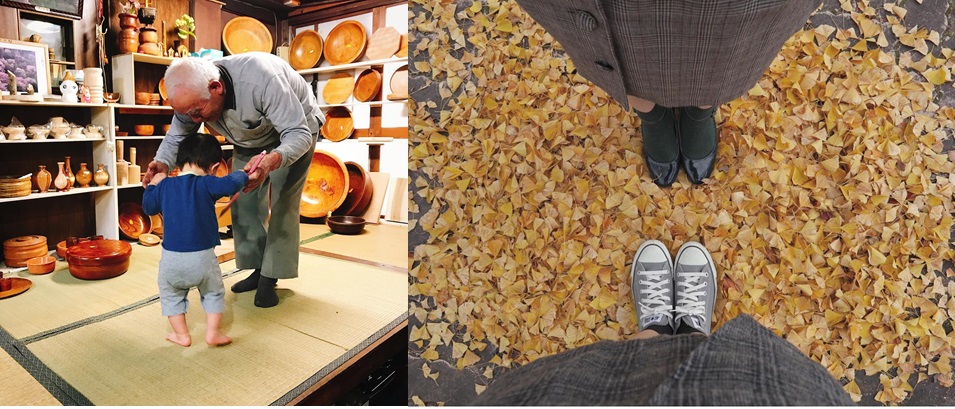 左 sierrawiskeyさんの作品:工房での一枚。ぬくもりを感じる木の器に囲まれてダンス。/右 08yumaaaさんの作品:久しぶりに会ったお友達と。チェックのスカートでシンクロしたのは偶然だったのでしょうか。