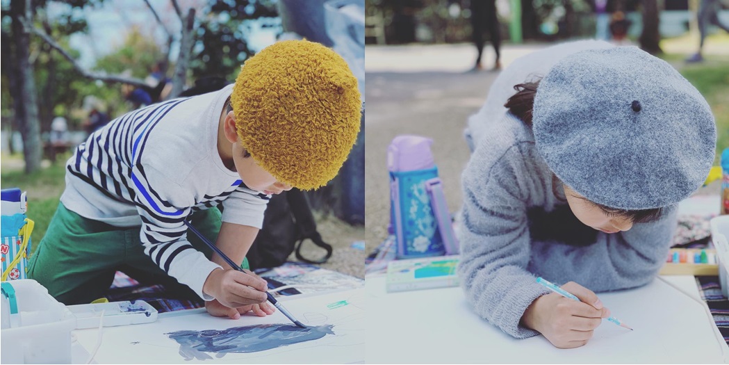 rt_rieさんの作品:ベレー帽がお似合いのご兄弟で写生大会に参加。まさにアーティストLOOK。一緒に絵を描きたくなります。