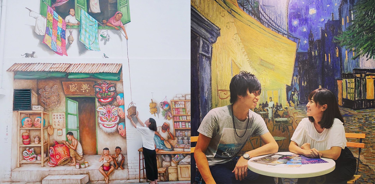 左 coffeemilk111さんの作品:シンガポールの路地で見つけた壁画。/右 02humptyxdumpty16さんの作品:まるで絵画の中に入っているよう。
