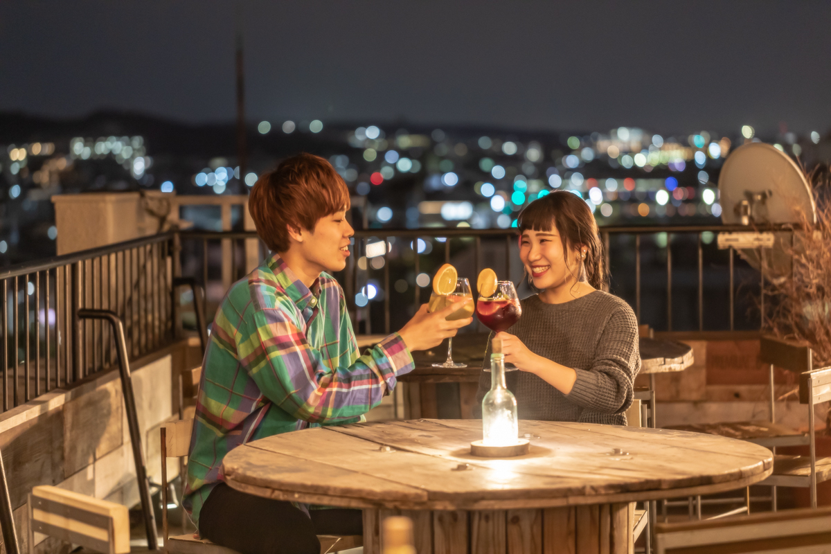 キラキラの光と夜景に包まれて。屋上カフェで京都の夜デート