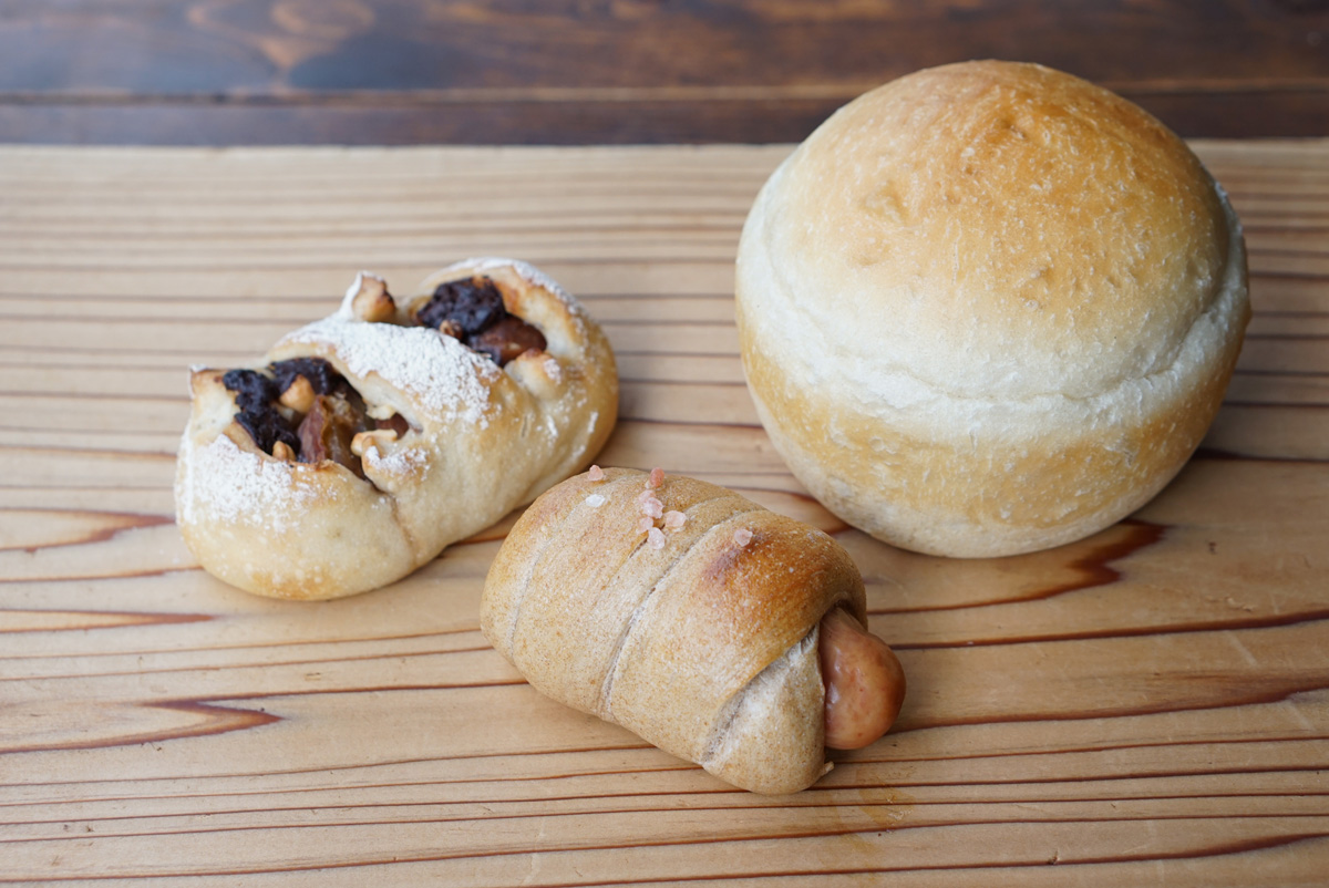 今回ご紹介するのはこちらの3種。一番右の丸っこいフォルムがなんともかわいらしいパンが「有機栽培小麦きたほなみの丸食パン」(350円)です。「ecomo Bakery YOKOHAMA MOTOMACHI」で人気の食パン「kakukaku」(380円)と同じ生地を使用しています。重量感たっぷりですが、口溶けは軽く、キメの細かい生地はしっとりなめらか。そのまま食べてもおいしいです。真ん中はピンクの岩塩がのったシンプルな「ポークフランク」(330円)。添加物の少ないソーセージはジューシーで皮がパリッとしています。そこに岩塩の絶妙な塩加減がプラス。シンプルなパンとの相性も抜群です。そして季節限定でご紹介するのは「マロンショコラ」(320円)。たっぷりの栗とカカオ70%のオーガニックショコラ、カシューナッツがのったひと品。栗とショコラの相性は言わずもがな、カシューナッツの食感がアクセントに! 食感を楽しんでいるうちに、あっという間に完食してしまいました。