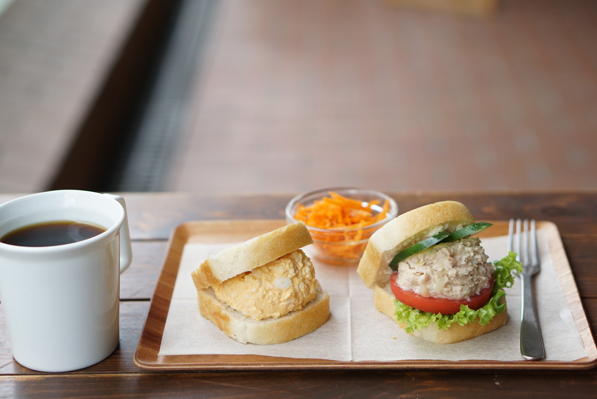 同系列店で唯一カフェスペースがある「ecomo Bakery YOKOHAMA MOTOMACHI」。ランチメニューも要チェックです。「サンドイッチセット(玉子・ツナ)」(900円)は平日限定メニュー。スープの付くセットも選ぶことができます。かわいらしいミニパンは「kakukaku」と同じ生地を使用。もちもちで耳までおいしいのが特徴です。平飼い卵を使用した玉子サンドは軽やかでありながら、濃厚な味わい。有機トマトやレタス、キュウリがはいったツナサンドはフレッシュでさっぱりいただけます。どちらも食べやすいので軽食にぴったりと思いきや、食べ終わるとかなりの満足感。片手で食べられるので、小さな子どもがいるときでも安心です。
